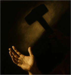 the nail marks in his hands and put my finger where the nails were, and put my hand into
