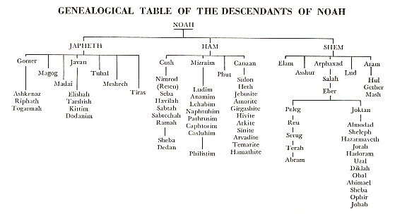 18 The sons of Noah who came out of the ark were Shem, Ham and Japheth. (Ham was the father of Canaan.) 19 These were the three sons of Noah, and from them came the people who were scattered over the whole earth.